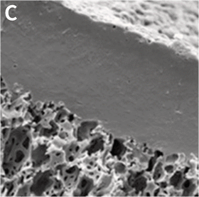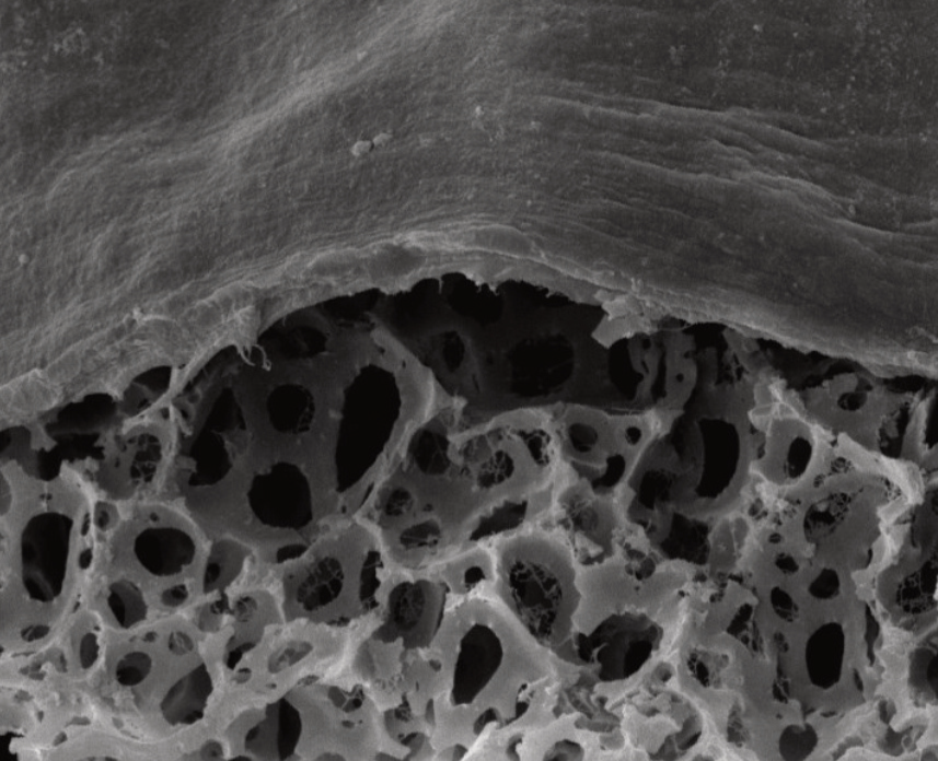 The Alvetex membrane is currently available in two types: Alvetex Scaffold and Alvetex Strata. Both materials are presented as 200 µm thick membranes of highly porous cross-linked polystyrene. The difference is in their fine structure and architecture.