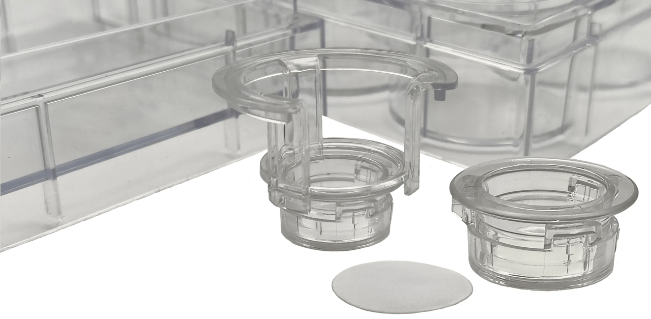 The platform is designed with flexibility in mind. Inserts containing skin models can be transferred between different plate formats without disruption, making it straightforward to adapt experiments to varying throughput requirements. Specially designed interchangeable handles can be clipped to inserts, allowing precise control of insert depth, culture medium volume, and simple adjustment to the air–liquid interface. In addition, the system supports both individual culture wells and larger tray formats, where multiple models can share a common medium bath. This versatility enables researchers to tailor experimental conditions to the needs of specific studies.