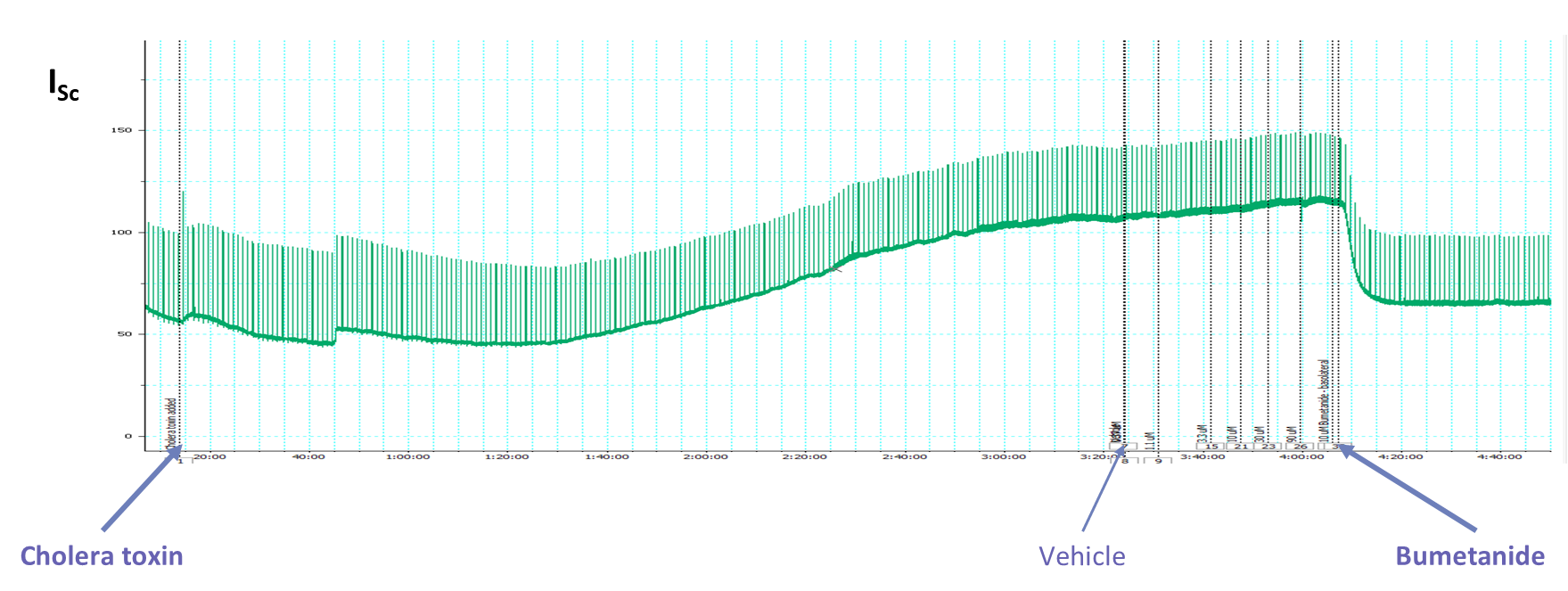 We provide solutions for studying ion channel function using our advanced Ussing chamber system. This tool detects changes in ion channel activity and exchange mechanisms, critical for understanding drug interactions within gastrointestinal tissues. By measuring short circuit current (Isc, µAmps), our assays predict the effects of your test articles on ion channel function, especially in the gastrointestinal tract, where ion channels regulate fluid secretion.